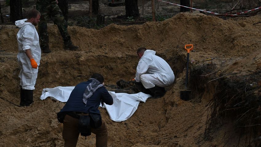 Szeptember 16.péntek 18:38 tömegsír Agyonlőtt ukrán katonák holttesteit találták az izjumi tömegsírban