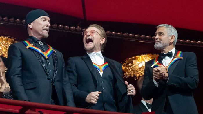 1/20A Kennedy Center minden évben kitünteti az amerikai előadóművészetben dolgozókat, köszönetképpen az amerikai kultúrához való hozzájárulásukért. A kitüntetéseket 1978 óta adják minden decemberben egy sztárokkal teli gálán a washingtoni Kennedy Center Operaházban. A képen az év kitüntetettjei, George Clooney színész, Bono és The Edge, a U2 zenészei érkeznek az ünnepségre 2022. december 4-én.