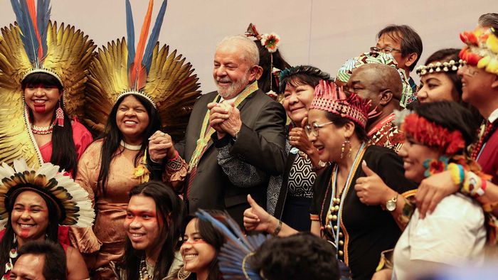 1/14Luiz Inacio Lula da Silva, a nemrég megválasztott brazil elnök csoportképen pózol országa őslakosainak képviselőivel a COP27 klímakonferencián az egyiptomi Vörös-tengeri üdülővárosban, Sharm el-Sheikhben 2022. november 17-én.