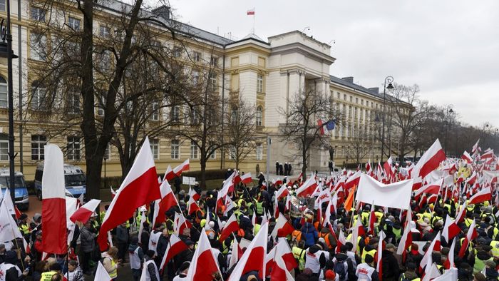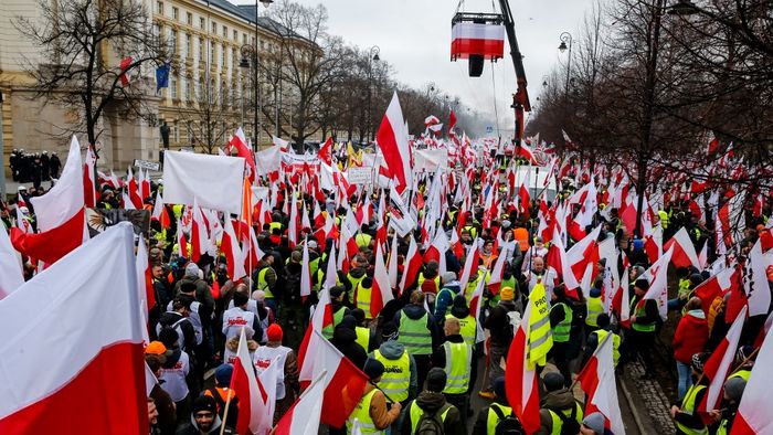 A lengyel rendőrség könnygázt vetett be a Donald Tusk és kormánya ellen tüntető békés gazdálkodók ellen a lengyelországi Varsóban