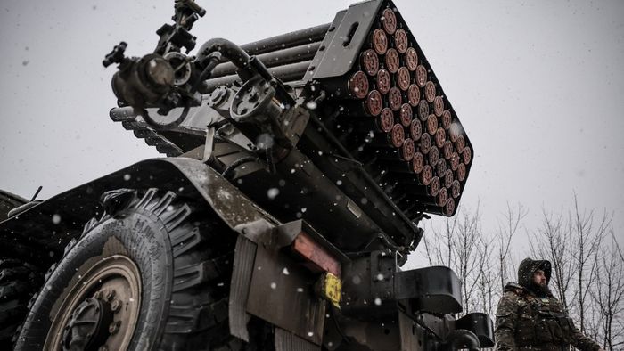 1/18A Ukrainian member an Azov Brigade drone team - callsign Sava, 21 - launches a surveillance drone towards Russian positions, in the direction of Toretsk, eastern Donetsk region, on February 4, 2025, amid the Russian invasion of Ukraine. The Azov Battalion became a household name in Ukraine weeks after Russia invaded Ukraine in 2022 for its last-ditch defence of the southern city of Mariupol. It held out in bunkers beneath the city's sprawling metal works before surrendering to the Russian forces
