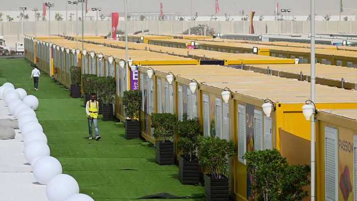 1/7Hatalmas konténerfaluval várja a fociszurkolókat Katar