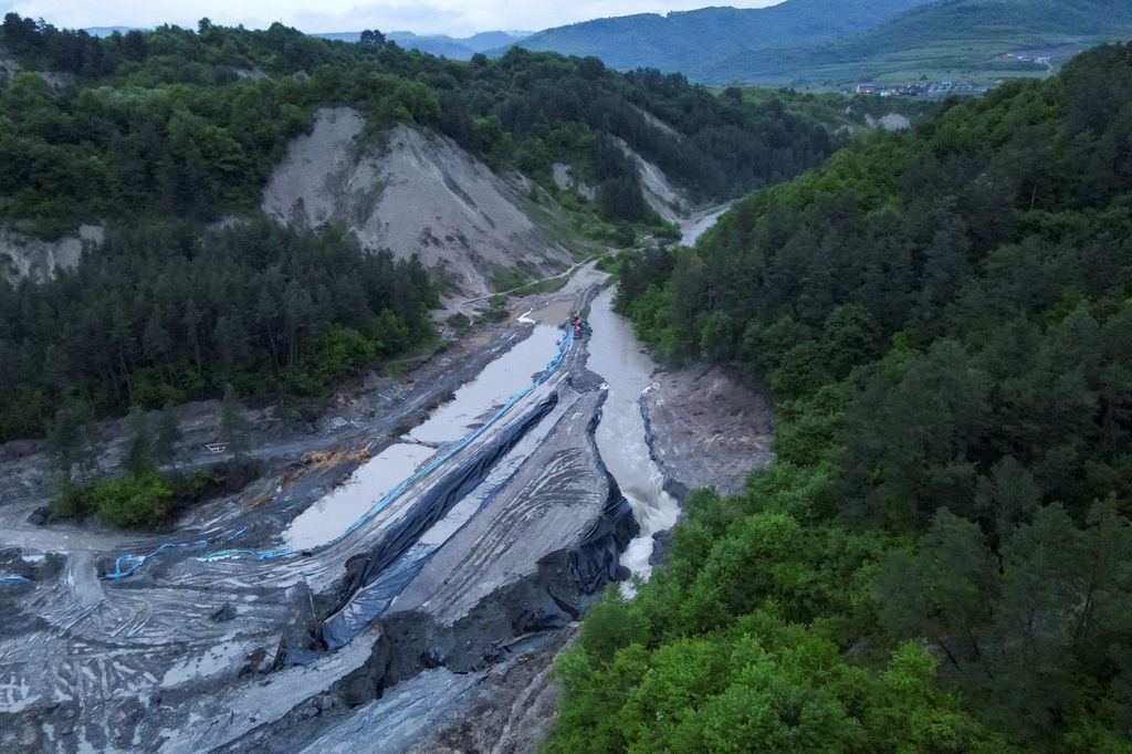 1/25Egy villanyszerelő pihen, miközben egy távvezetéken dolgozik Hanoiban 2025. május 29-én.