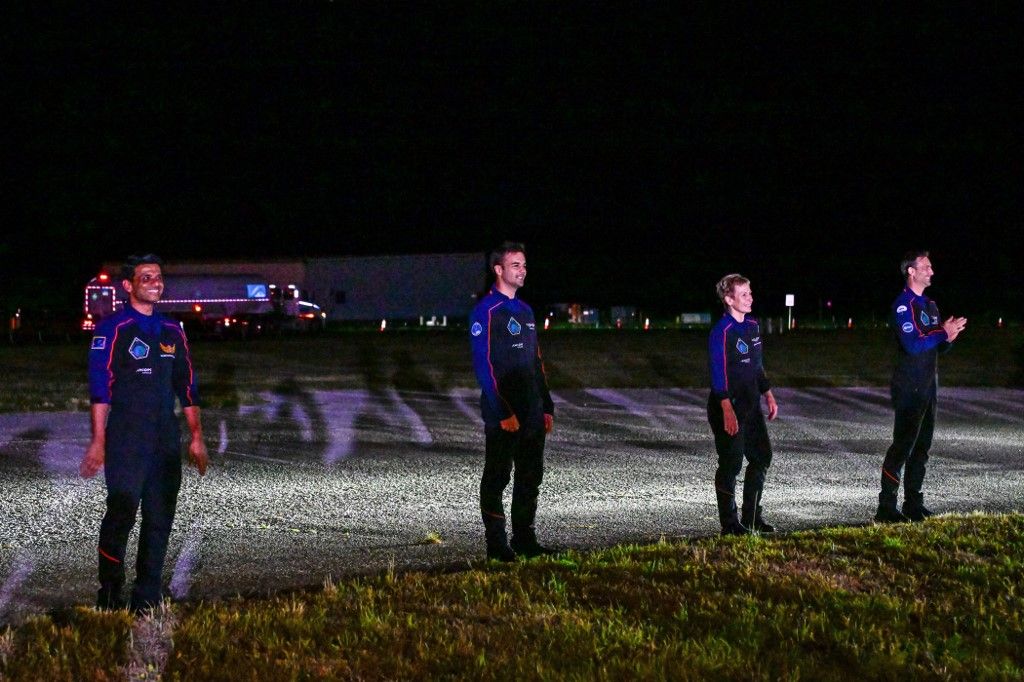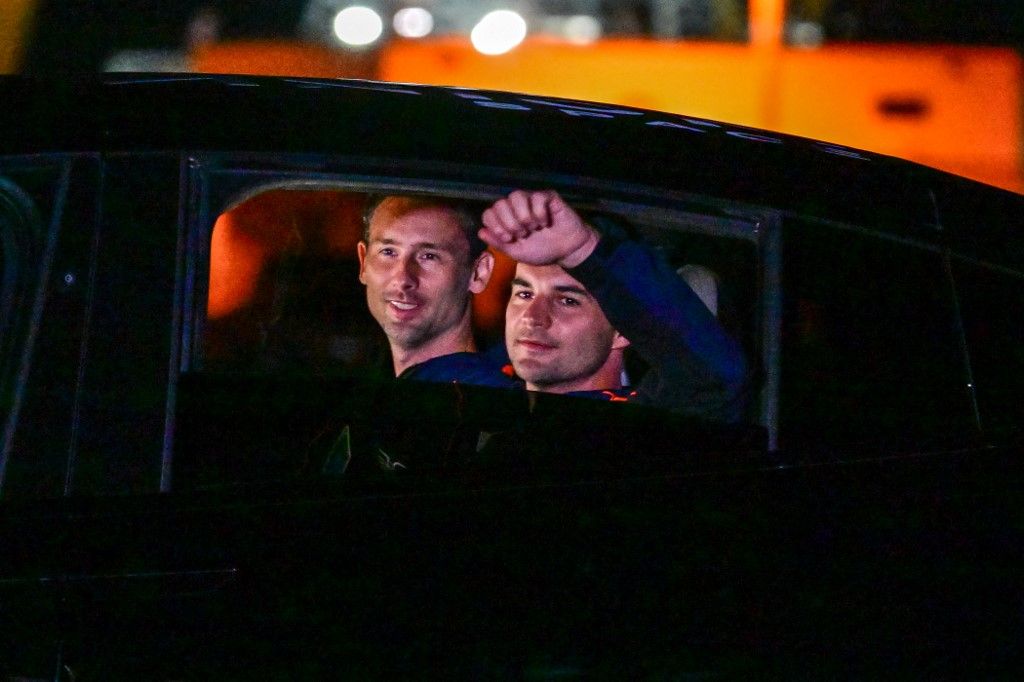 1/14Slawosz Uznanski-Wisniewski lengyel űrhajós (balra) és Kapu Tibor magyar űrhajós gesztikulál a rokonoknak, miközben a SpaceX Dragon űrhajóval és Falcon 9 rakétával az Axiom-4 küldetés előtt a 39A indítókomplexumhoz tart, a NASA Kennedy Űrközpontjában, a floridai Cape Canaveralban 2025. június 24-én. India, Lengyelország és Magyarország évtizedek óta először küld embereket az űrbe a Nemzetközi Űrállomásra június 25-én kora reggel felbocsátott amerikai kereskedelmi küldetésen. Az Axiom Mission 4 vagy Ax-4 a NASA floridai Kennedy Űrközpontjából hajnali 2:31-kor (0631 GMT) indul, egy vadonatúj SpaceX Crew Dragon kapszulával, amely egy Falcon 9 rakéta tetején utazik. (Fotó: Giorgio VIERA / AFP