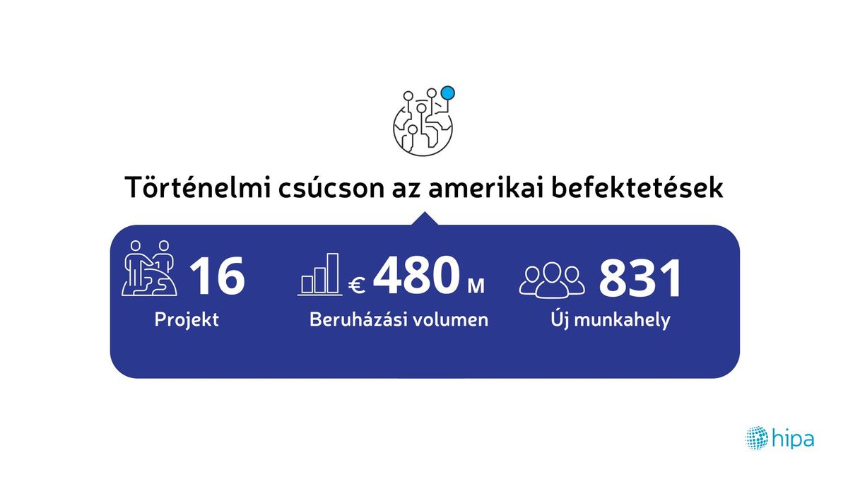 Az Egyesült Államok kapcsán 16 projektet jelentett be a HIPA, ami történelmi csúcsot jelent. Az amerikai beruházások mintegy 480 millió euró (csaknem 200 milliárd forint) volument képviselnek, és 800-nál is több munkahelyet teremtenek.