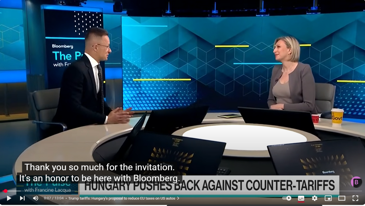 Brüsszelnek ránk kellett volna hallgatni vámügyben, most bánhatják – Szijjártó a Bloomberg TV-n