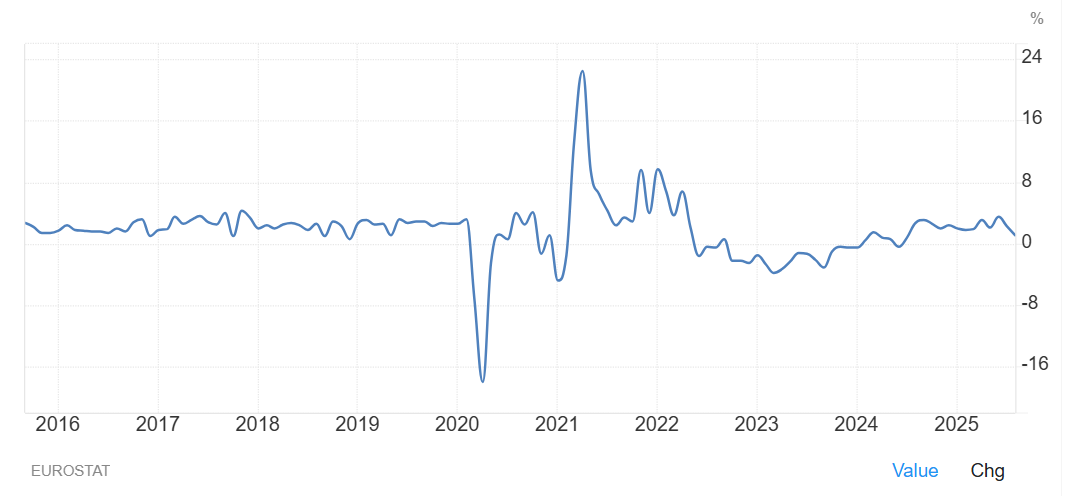 A háttér: a fogyasztók vásárlóereje 2023 óta javult, a bérmegállapodásokban elért béremelkedés üteme már meghaladta az energiaválság idején elszabadult inflációt. Ennek nyomán aztán a fogyasztás idén már mutatott némi élénkülést, az adatok azonban jelzik: a fogyasztók visszafogottak maradtak. A kiskereskedelmi forgalom pedig ismét csökkenő trendet mutat: a júniusi félszázalékos növekedés volt az utolsó hónap, amikor még bővülést láttunk – ez pedig nem sok jóval kecsegtet a fogyasztás harmadik negyedévi alakulását illetően – fogalmaz a jegyzet.