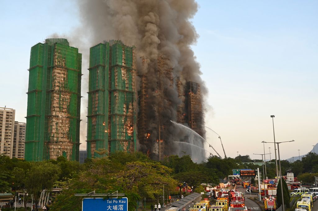A baleset kitörése után majdnem egy teljes nappal később a tűzoltók még mindig küzdöttek, hogy eljussanak a Wang Fuk Court lakótelep felső emeletein esetlegesen csapdába esett lakókhoz, mivel a szerdán délután kitört tűz miatti forróság és sűrű füst nehezítette a munkájukat. A tűzeset kezdetétől fogva zuhannak az építkezési cég részvényei, azonban hongkongi dollgármilliók mozdulhatnak a baleset-biztosításra, amelyet 2027-ig kötöttek.
