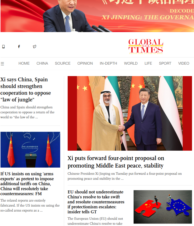 - és ezek mellett, de még a címlapon szerepel az Európának szóló üzenet a következő címmel: Az EU-nak nem szabad alábecsülnie Kína eltökéltségét, hogy gyors és határozott ellenintézkedéseket hozzon, ha a protekcionizmus fokozódik – mondta egy bennfentes a Global Timesnak.