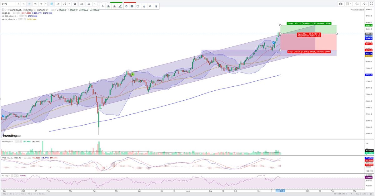 Az OTP Bank részvényeinek technikai összképe nagyon erős emelkedő (long) irányt mutat, és a legfrissebb célárak is feljebb kerültek. A fundamentumok és az erős növekedés is alátámasztják a technikai képet, a nettóprofit-termelő képessége pedig regionális bajnokká teszi az OTP-t, a versenytársakhoz viszonyított értékeltsége további felfelé mutató irányt is jelezhet.