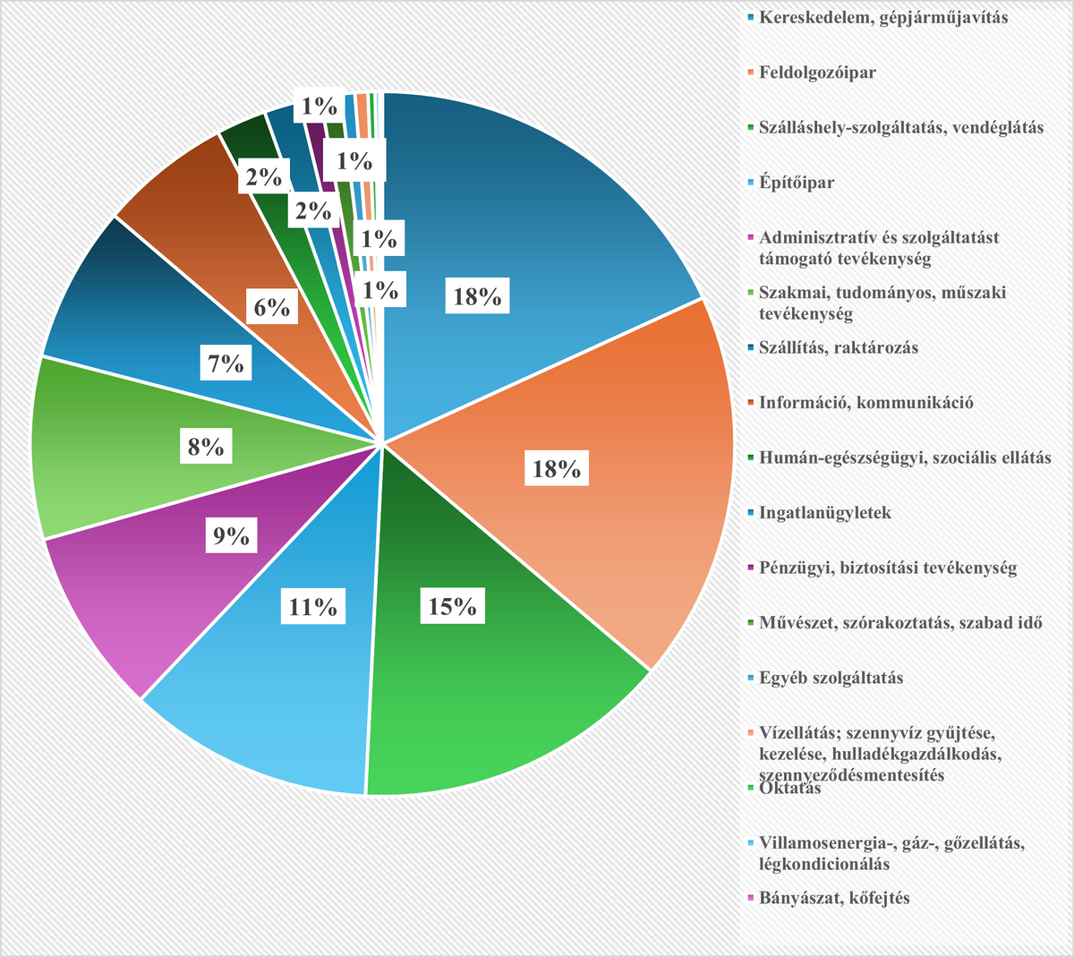 Területi szempontból erős koncentráció figyelhető meg: a gyorsan növekvő vállalkozások több mint 50 százaléka Közép-Magyarországon (Budapesten és Pest vármegyében) működik, míg további 10-10 százalékuk a Dél-, illetve az Észak-Alföldön található. Tevékenységi körüket tekintve is erős a koncentráció mértéke: a gyorsan növekvő vállalkozások több mint egyharmada a kereskedelemben, gépjárműjavításban, valamint a feldolgozóiparban tevékenykedik. A feldolgozóiparon belül a fémalapanyag és fémfeldolgozási termék, valamint az élelmiszer, ital, dohánytermék gyártása ágazatokban működik a legtöbb gyorsan növekvő vállalkozás. A harmadik legjelentősebb ágazat pedig a szálláshely-szolgáltatás, vendéglátás, ahol a gyorsan növekvő vállalkozások 15 százaléka tevékenykedik (lásd 2. ábra).